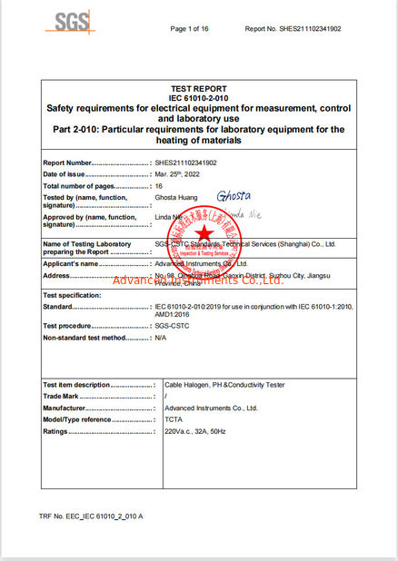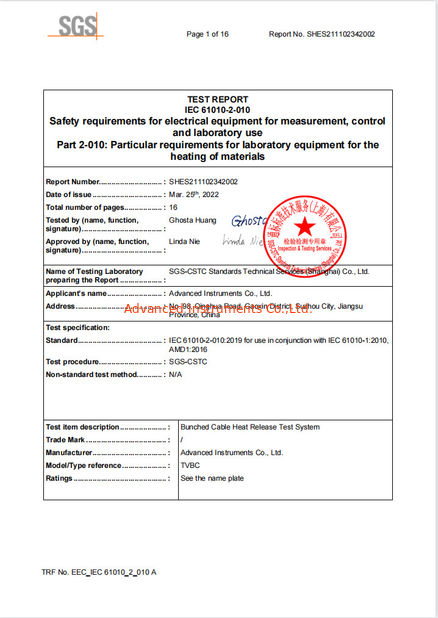 Стандарт:LVD Test Report IEC 61010-2 Область / Диапазон:TCTA Выпущен К:SGS |