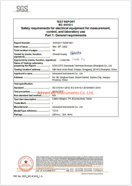 Стандарт:LVD Test report IEC 61010-1 Область / Диапазон:TCTA Выпущен К:SGS |