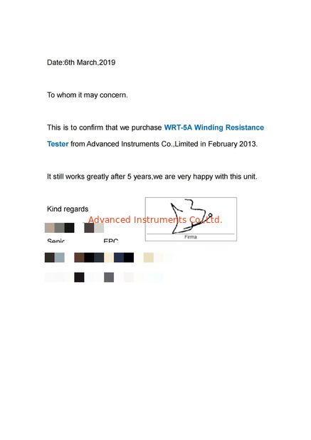 Стандарт:Performance Letter Область / Диапазон:DC Winding Resistance Meter Выпущен К:Chile customer |