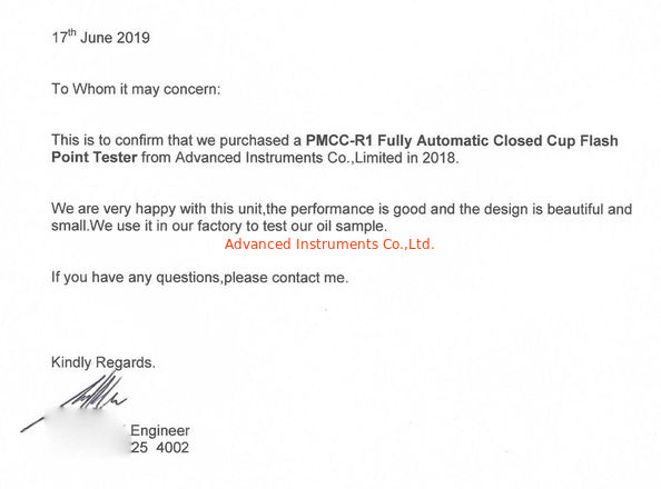 Стандарт:Performance letter Область / Диапазон:Automatic PMCC Flash Point Tester Выпущен К:Austrilia Customer |